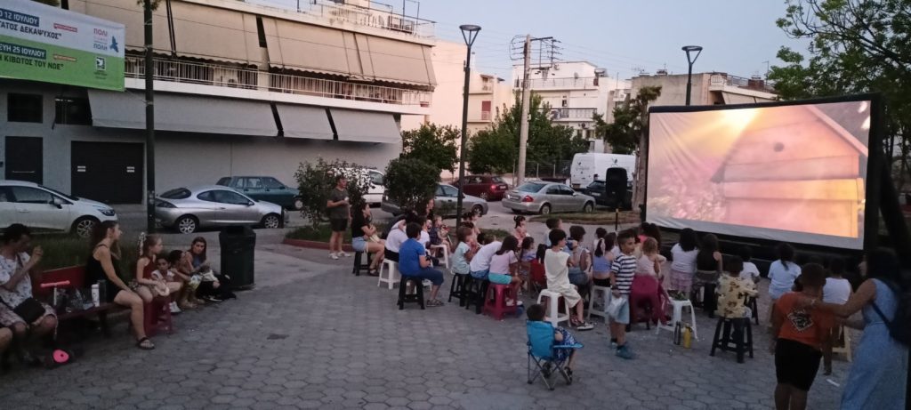 Ήδη έχουν προβληθεί ταινίες: το Σάββατο 12 Ιουλίου – Πλατεία Προβελεγγίου – Νέα Ζωή (οδός Προβελεγγίου και Πτολεμαΐδος), ταινία: Γάτος δεκάψυχος, τη Δευτέρα 14 Ιουλίου – Πλατεία Δασκαλογιάννη – Μπουρνάζι (Μωρογιάννη και Πάτμου), ταινία: Η κιβωτός του Νώε και την Τετάρτη 16 Ιουλίου – Πλατεία Αγίου Γεωργίου – Αγ. Ιερόθεος (Σικάγου και Πλ. Αγ. Γεωργίου), ταινία: Γάτος δεκάψυχος.
