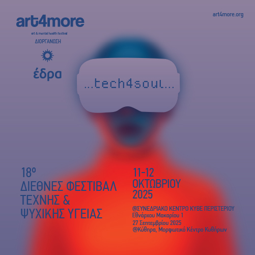 18ο Φεστιβάλ ART4MORE 2025 «Tech4Soul: Τέχνη, Τεχνολογία & Ψυχική Υγεία» 18ο Διεθνές Φεστιβάλ Τέχνης & Ψυχικής Υγείας