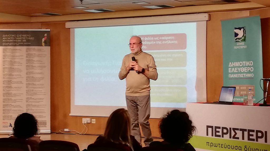 Ομιλητής της εκδήλωσης ήταν ο κ. Παναγιώτης Κορδούτης, Καθηγητής Κοινωνικής Ψυχολογίας των Διαπροσωπικών Σχέσεων και Πρόεδρος του Τμήματος Ψυχολογίας του Παντείου Πανεπιστημίου, ο οποίος ανέλυσε τον ρόλο των φιλικών σχέσεων στην ενήλικη ζωή και τα οφέλη τους για την ψυχική ευεξία και κοινωνική συνοχή.