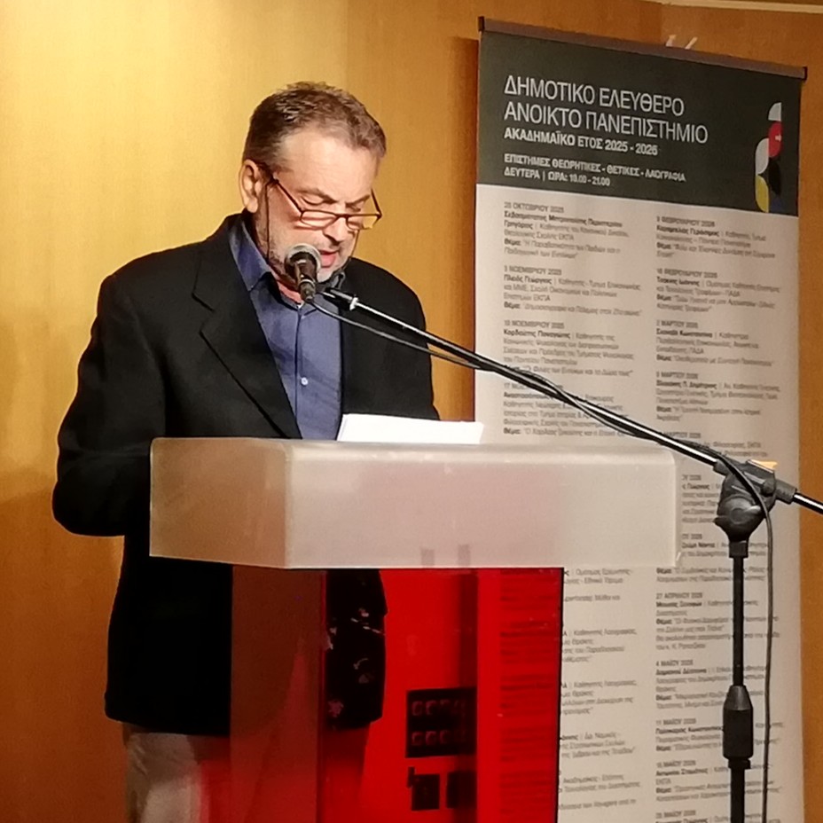 Τον ομιλητή προλόγισε ο κ. Αλέξανδρος Πατσής, Δρ. Ιστορίας της Εκπαίδευσης, Εκπαιδευτικός και Μέλος της Συντονιστικής Επιτροπής του Δ.Ε.Α.Π. Περιστερίου, ο οποίος αναφέρθηκε στη σημασία των διαλέξεων του θεσμού ως πολύτιμου πεδίου γνώσης και ανοιχτού διαλόγου με το κοινό.