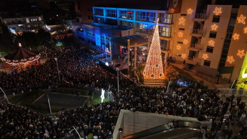 Δεκάδες χιλιάδες πολίτες κατέκλυσαν στις 9 Δεκεμβρίου 2025 την κεντρική πλατεία του Περιστερίου, δημιουργώντας μια ανεπανάληπτη γιορτινή ατμόσφαιρα στη φωταγώγηση του Χριστουγεννιάτικου Δέντρου της πόλης.