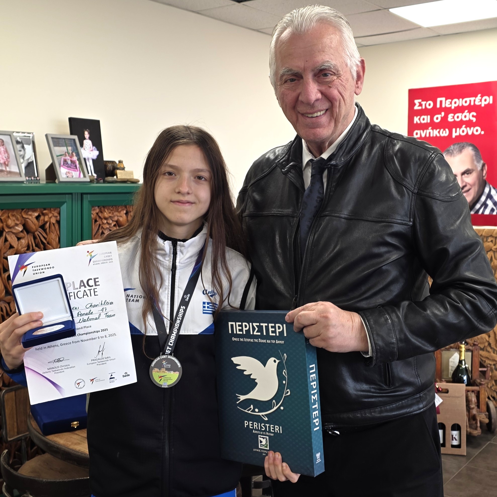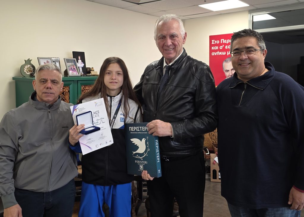 Ο Δήμαρχος Περιστερίου Ανδρέας Π. Παχατουρίδης τίμησε την Περιστεριώτισσα Χαρίκλεια Σεφέρη για τη μεγάλη ευρωπαϊκή της διάκριση στο Taekwondo