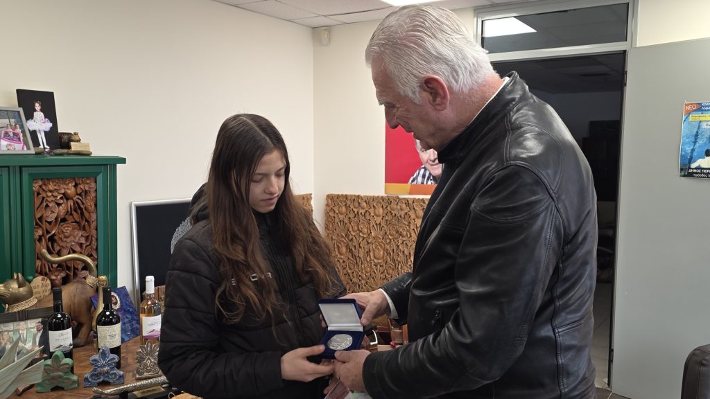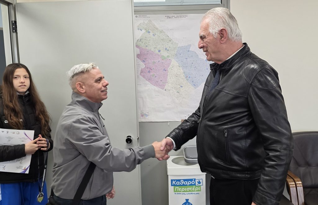 Ο Δήμαρχος Περιστερίου, Ανδρέας Π. Παχατουρίδης, υποδέχθηκε τη Δευτέρα 26 Ιανουαρίου 2026 στο Δημαρχιακό Μέγαρο τη νεαρή Περιστεριώτισσα αθλήτρια Χαρίκλεια Σεφέρη και τη τίμησε για την εξαιρετική της επιτυχία στο Ευρωπαϊκό Πρωτάθλημα Taekwondo Κορασίδων 2025.