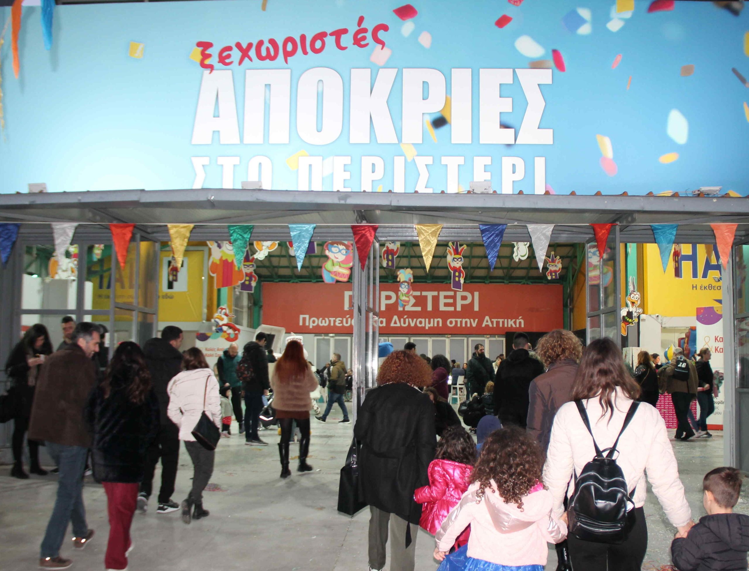Πολλές χιλιάδες μικροί και μεγάλοι κατέκλυσαν τους στεγασμένους χώρους των 10.000 τετραγωνικών μέτρων του Εκθεσιακού Κέντρου Περιστερίου, απολαμβάνοντας δωρεάν ένα πλούσιο και πολυδιάστατο αποκριάτικο πρόγραμμα, γεμάτο μουσική, χορό, παιχνίδι και δημιουργικές δράσεις.