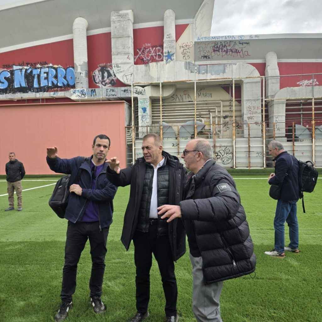 Στη συνέχεια, ο Αν. Υπουργός Αθλητισμού επισκέφθηκε το Λαϊκό Στάδιο Αγίου Ιεροθέου, έναν χώρο άθλησης υψηλής επισκεψιμότητας, όπου καθημερινά πραγματοποιούνται προπονήσεις και αγώνες ποδοσφαιρικών σωματείων, ενώ παράλληλα χιλιάδες πολίτες αξιοποιούν τις εγκαταστάσεις και το ταρτάν για την άθλησή τους.